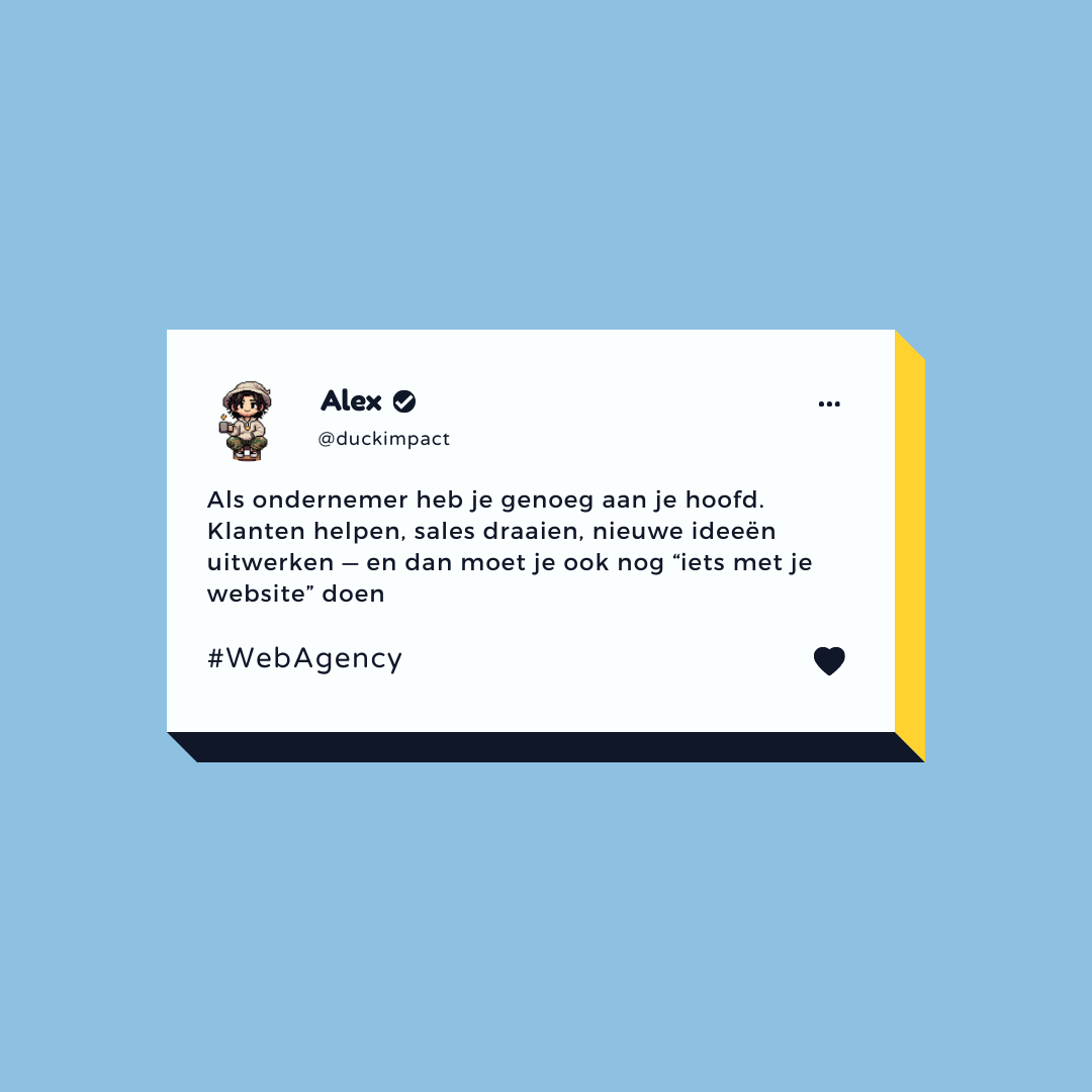 Wij zijn hier om content te creΓ«ren die jouw aandacht verdient! Heb je een brandende marketingvraag, een onderwerp waar je meer over wilt weten, of een episch idee voor onze blog? Laat het ons weten! Stuur jouw ideeΓ«n naar info@duckimpact.nl en wij gaan ermee aan de slag, klaar om jouw marketingavontuur te verrijken.